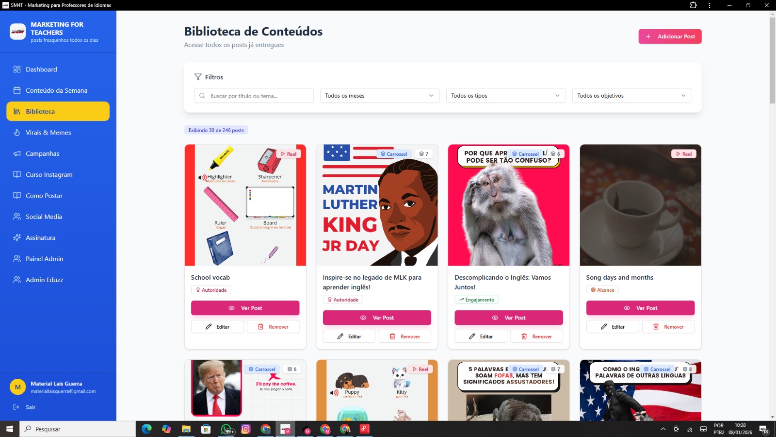 A plataforma completa para professores e escolas de inglês que querem lotar a agenda. Conteúdo pronto, gestão de social media e ferramentas de campanha em um só lugar.